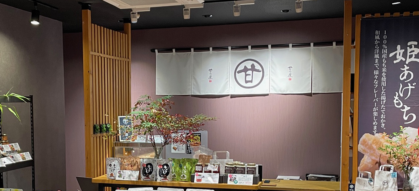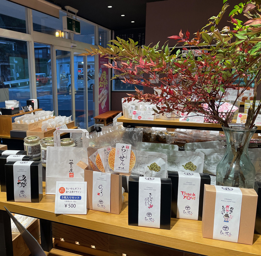 甘乃屋オリジナル商品・回転焼き「甘乃屋太鼓」・チーズ煎餅「ちいせん」・やわらか芋けんぴ「芋けんデラックス」・国産もち米使用「姫あげもち」・米チップスなどを自社で製造しております。美味しさを探求し新商品開発にも取り組んでいます。