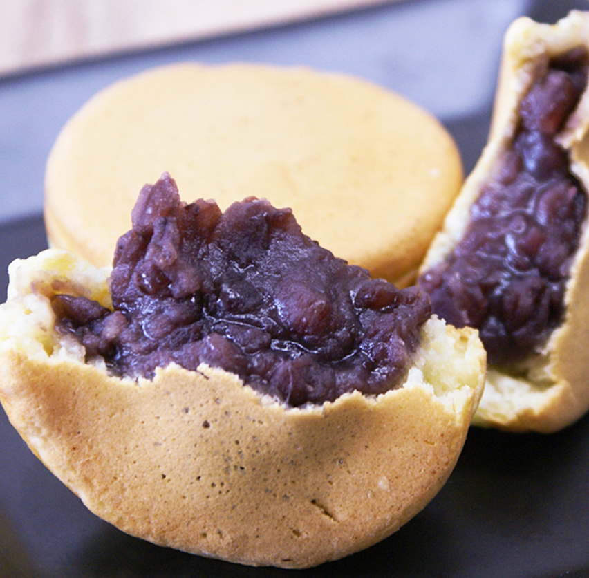 甘乃屋太鼓(あまのやだいこ)は、ちょっとこぶりな大判焼きです。厳選した国産の餡を、冷めても美味しい皮で包みました。定番のあずき餡、白餡もご用意しております。